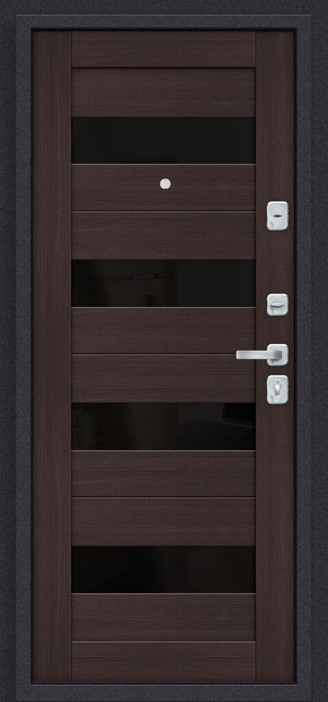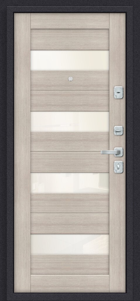 Сверхпрочная конструкция "6x2" - двойная толщина стали профиля полотна, двух контуров коробки, в зонах замка и петель. Дополнительную безопасность обеспечивают два противосъемных штыря с цинковым покрытием (для защиты металла от коррозии).
