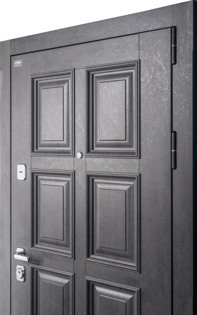 Сверхпрочная конструкция "6x2" - двойная толщина стали профиля полотна, двух контуров коробки, в зонах замка и петель. Дополнительную безопасность обеспечивают два противосъемных штыря с цинковым покрытием (для защиты металла от коррозии).